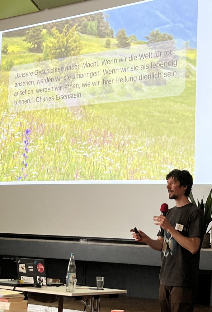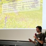 Wildnispädagoge Frederik Amann-Bräuer sprach zum Ende der Veranstaltung über die Schönheit von Wiesen und ihre entspannende Wirkung auf uns Menschen. Er fragte: „Wie viel Wildnis wollen wir zulassen?“ und plädierte dafür, mehr rauszugehen und die Natur einfach wahrzunehmen. In diesem Zusammenhang erläuterte er noch verschiedene pädagogische Möglichkeiten mit Kindern die Natur zu erleben.