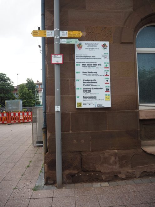 Start also in Lorch am S-Bahnhof. Dort gibt es eine Albvereins-Tafel für das erste Foto. Der erste Teil der Strecke führte Ruppert durchs Stauferland. „Die Aussicht war phänomenal“, schwärmt er. Die drei Kaiserberge prägen das Bild. Und in der Ferne zeigt sich die blaue Wand der Schwäbischen Alb.